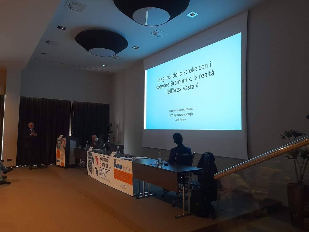 Il quadro clinico-diagnostico è stato completato dalle relazioni del Prof. Gabriele Polonara, Direttore UOC Neuroradiologia Azienda Ospedaliera-Universitaria di Ancona, che ha aperto la sessione del mattino con una relazione introduttiva sulle linee guida in materia di diagnostica dello stroke acuto, del Dott. Massimo Bonetti, Medico Radiologo dell’Area Vasta 4, che ha portato l’esperienza maturata nell’utilizzo del software di AI Brainomix nella diagnosi dello stroke acuto e del Dott. Stefano Bruni, Medico Radiologo Neurointerventista presso l’Azienda Ospedaliero-Universitaria di Ancona, che ha mostrato alcuni interessanti casi legati alle procedure di neuroradiologia interventistica in pazienti con stroke.