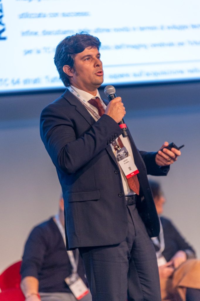 La Sessione I, moderata dal suo Responsabile Scientifico Andrea Spedicato (TSRM) e da Alessandro Tombolesi (TSRM), è stato aperto dalla Dottoressa Francesca Bozzetti (Medico Neuroradiologo, strutturata presso l’UOC Neuroradiologia del Dipartimento Diagnostico dell’Azienda Ospedaliero-Universitaria di Parma) che ha illustrato le ultime linee guida pubblicate per lo studio della patologia acuta, la semeiotica dell’encefalo in TC basale, il ruolo della TC angiografica e la perfusione cerebrale nei Trial Clinici.