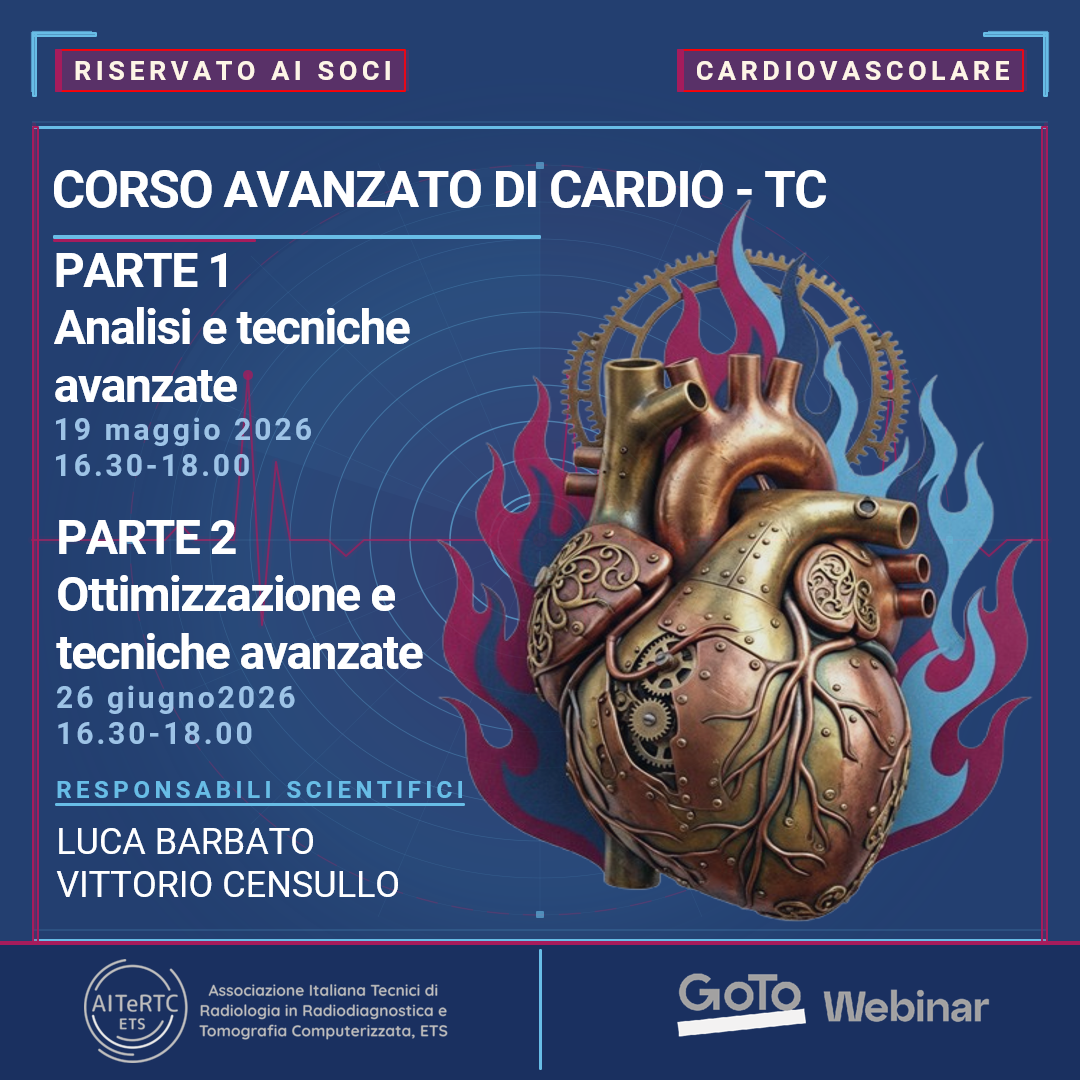 Nel contesto del programma formativo dedicato all’imaging TC cardiaco e vascolare proposto dal Gruppo scientifico del Distretto Cardiovascolare di AITERTC ETS martedì 26 Maggio 2026 alle ore…